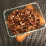 • 200 grams Eggplant (cut diagonally about 1/4″ thick, pan fried (approx. 4 pcs))