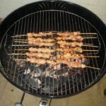 4. Grill meat over hot coals for about 2 to 3 minutes each side, basting occasionally until the meat is thoroughly cooked.