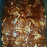 2. Mix all the marinade ingredients and then add the strips of pork. Marinate for a minimum of 4 hours (preferably overnight).